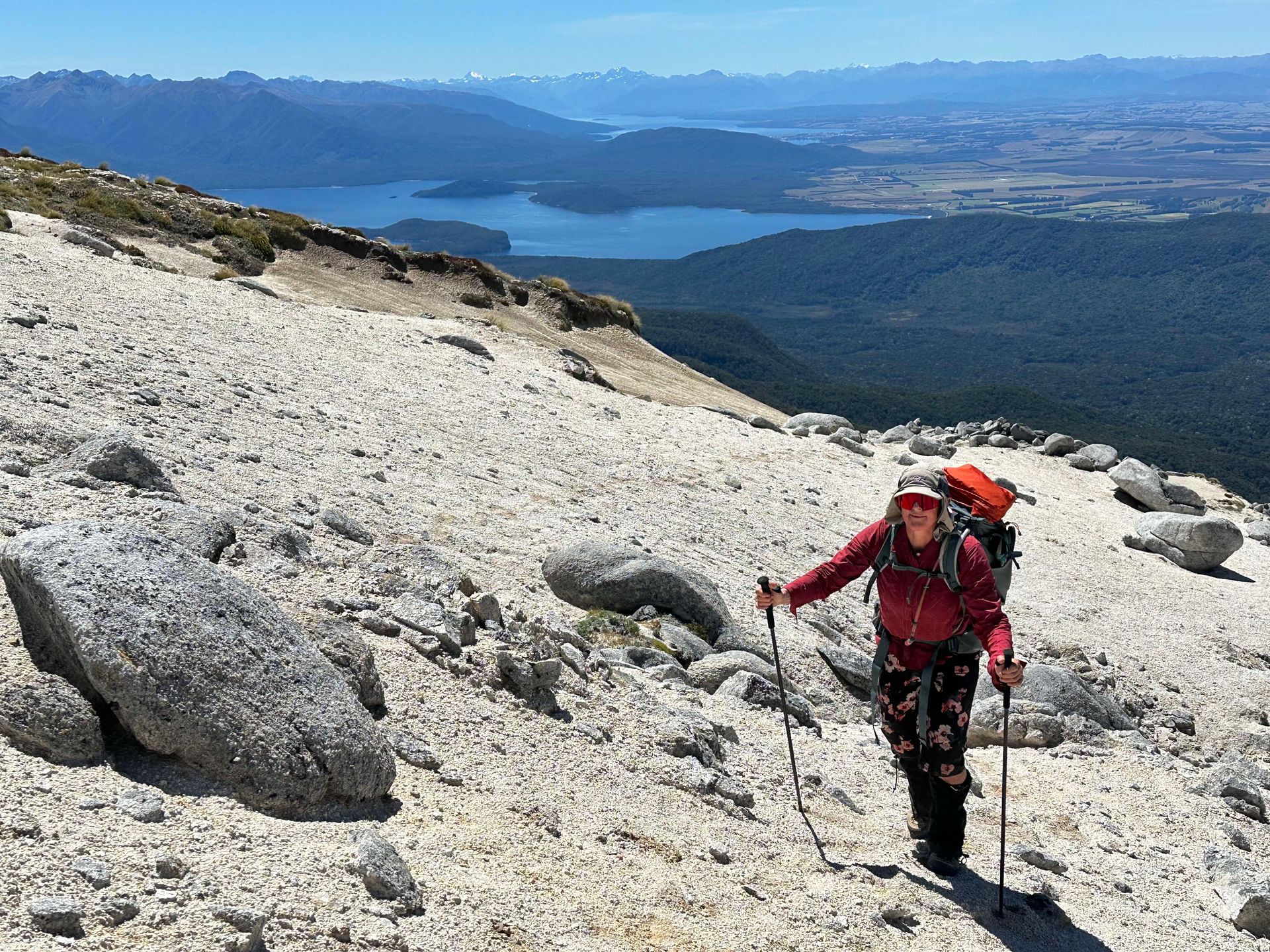 Mount Titiroa is a very obvious peak in Fiordland, given the white granite boulders cladding its upper slopes. It looks snow-covered all year round. Titiroa sits in the Hunter Mountains, across the Waiau River from Manapouri township. It has been on our radar to climb for a while and, when a weather window appeared in the forecast, we seized the opportunity. Fiordland doesn’t always have fine weather.