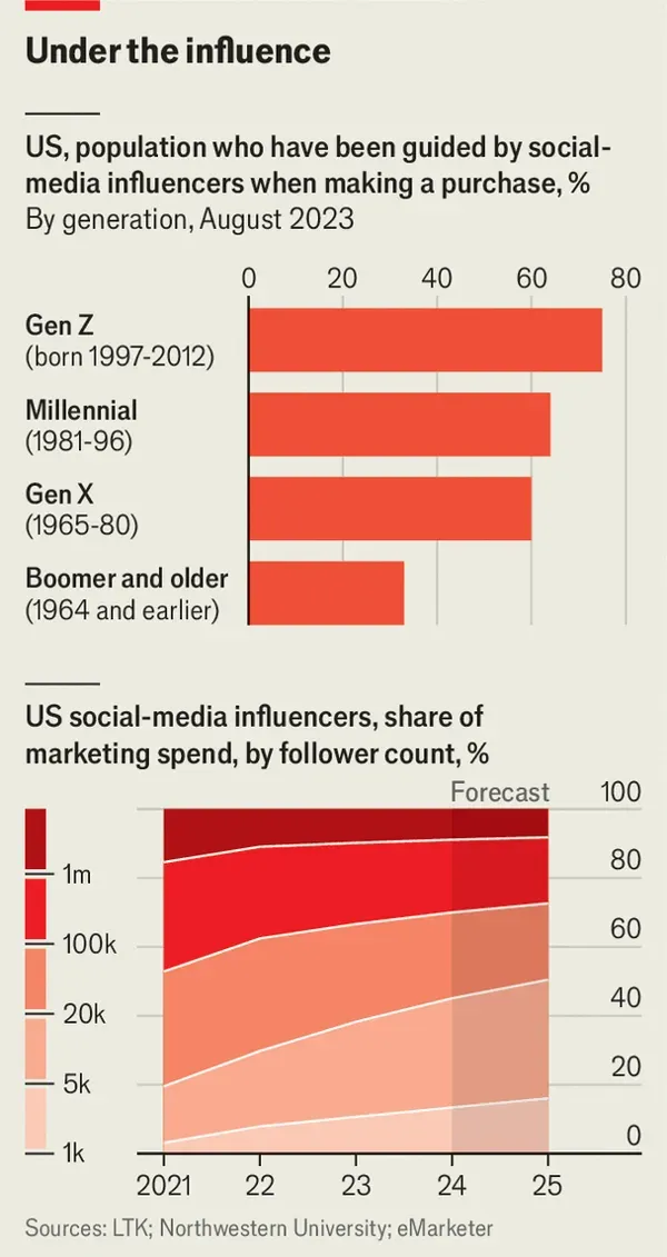 The other driver of my scepticism about reality on the web this week was reading an Economist article about the role of influencers. I thought influencers are for the Millenials but, no, it turns out 60% of GenX (my generation) in the US are sometimes guided by social media influencers when making a purchase and even 35% of Boomers are influenced. So influencers have…influence. The Economist article focused on how influencing is becoming a niche game – it used to be there were a few big-time celebrity influencers who everybody wanted to be and everyone wanted endorsing their products. Now companies are looking for more targeted influencers, who have dedicated followings from a niche market. This means there are more influencers each making less money; only 4% of the approximately 50 million influencers (or ‘creators’ as they prefer to be called…creators of what?) globally make more than $100,000 a year.