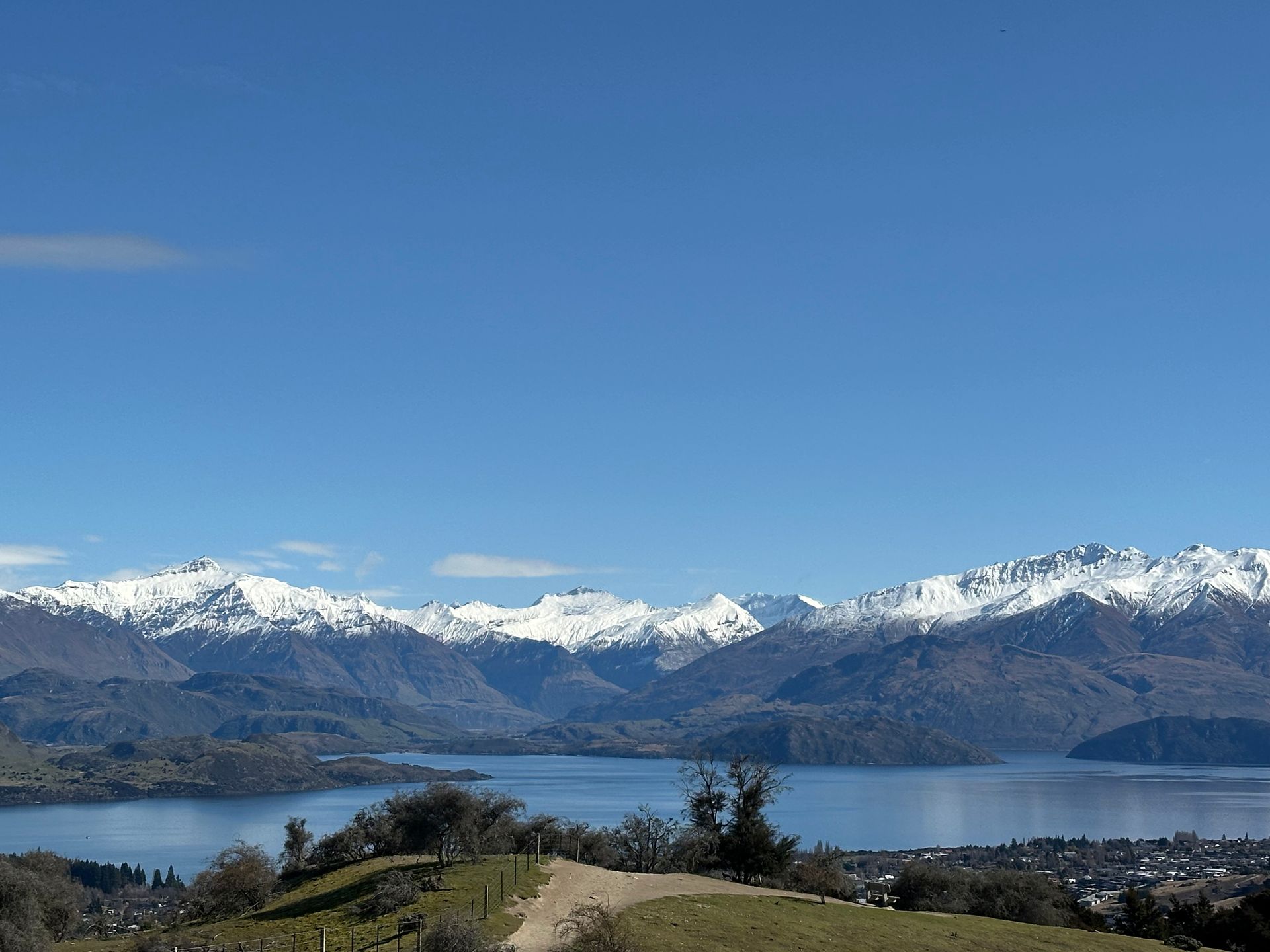 My first reaction was to get up at 7am and hurry home to get started on my list. My second reaction was to be where I was. I was in a beautiful place. Snow had fallen overnight and the mountains surrounding Wanaka wore white coats. The air was still and fresh and the sky was perfectly blue. What I wanted to do was take some time. I took the time to spend an hour chatting with a friend about his recent hunting trip. I took the time to walk over Mt Iron and I enjoyed the views so much that, when I got to the other side, I walked over it again.
